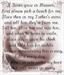 My father taught me everything, except how to live without him. Tell her that i love her and miss her, and when she turns to smile, place a kiss upon her cheek and hold her for awhile. If roses grow in heaven memorial poem. If roses grow in heaven, lord please pick a bunch for me, place them in my daughters arms and tell her they're from me. If roses grow in heaven lord, please pick a bunch for me. Tell her that i love her and miss her, and when she turns to smile, place a kiss upon her cheek and hold her for awhile. Place them in my mother's arms and tell her they're from me. The verse reads place them in my daughter's arms. 570 x 427 jpeg 32 кб. (they do not need any further lamination as the product itself is waterproof). I was in tears as i read through this list, as i'm sure many grown daughters will be. That grew down the river, all bloody and wild. Our greeting cards are 5 x 7 in size and are produced on digital offset printers using 100 lb.